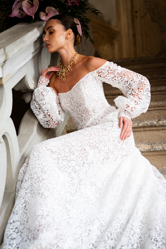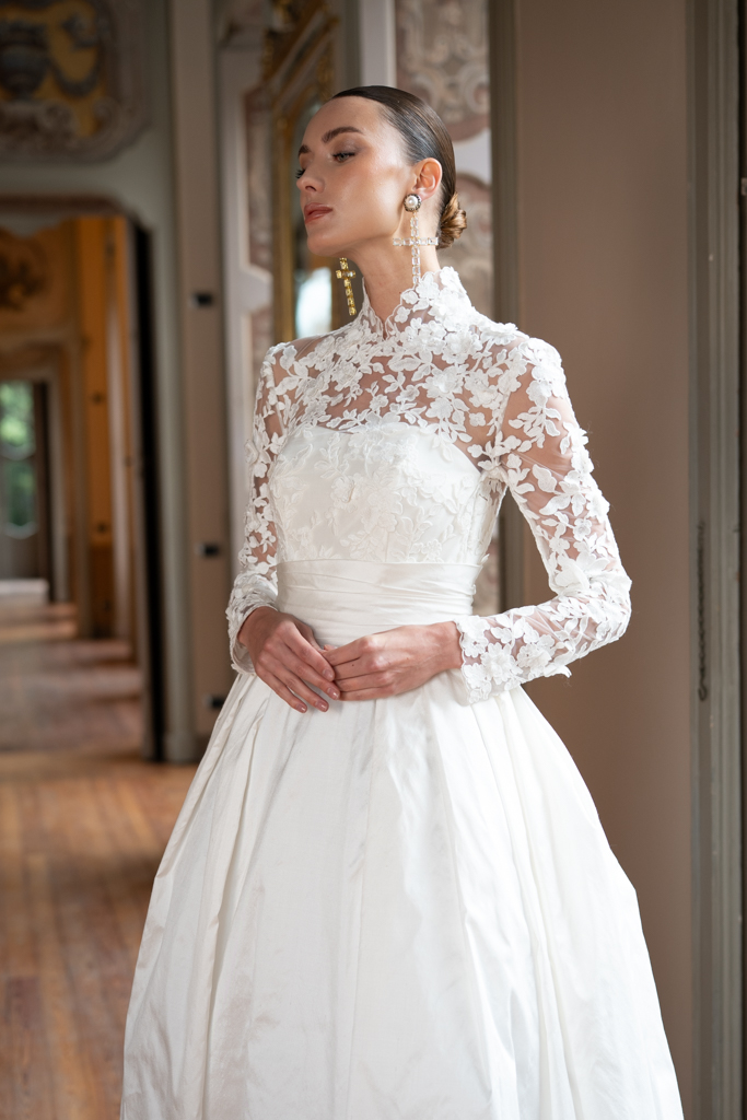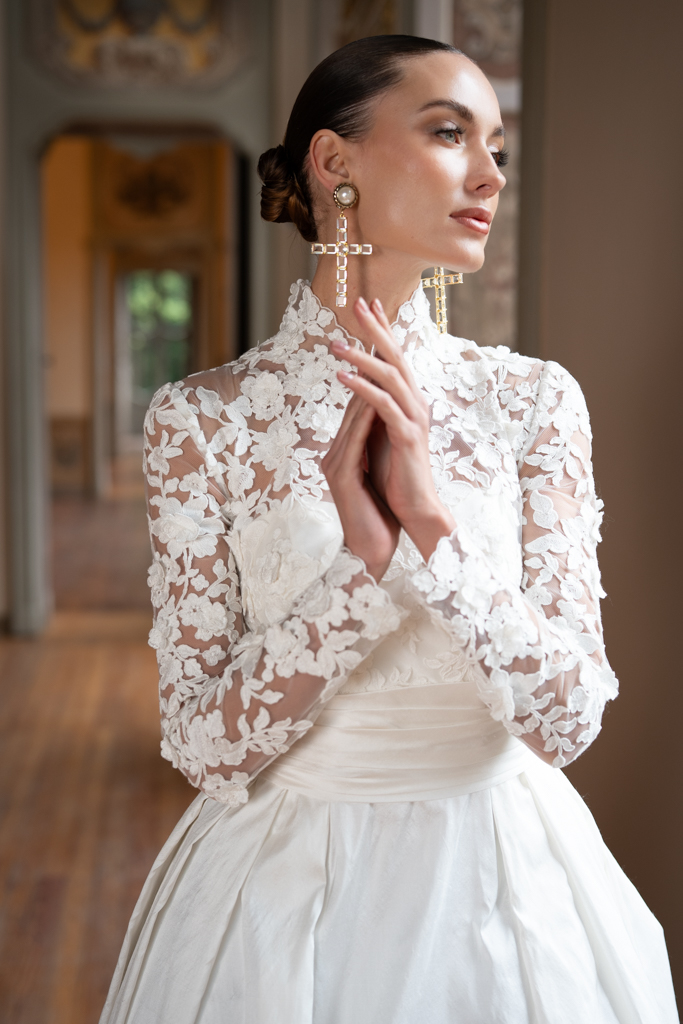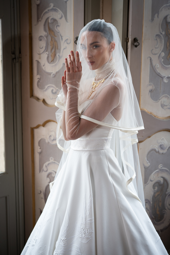 Abiti pensati per una sposa contemporanea, consapevole, che ama la tradizione ma sceglie di reinterpretarla con grazia.